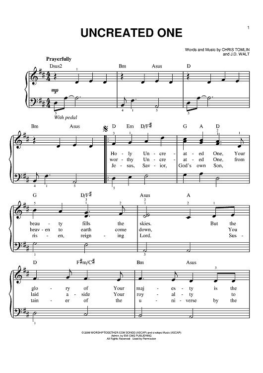Digital Sheet Music for Uncreated One by Chris Tomlin, J. D. Walt scored for Easy Piano; id:397077