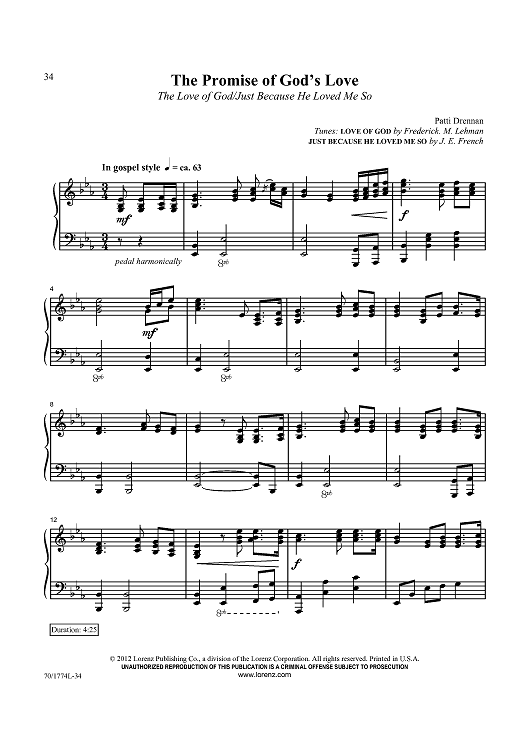 Digital Sheet Music for The Promise of God's Love by Frederick M. Lehman, Patti Drennan, J. E. French scored for Piano Solo; id:433669