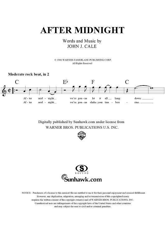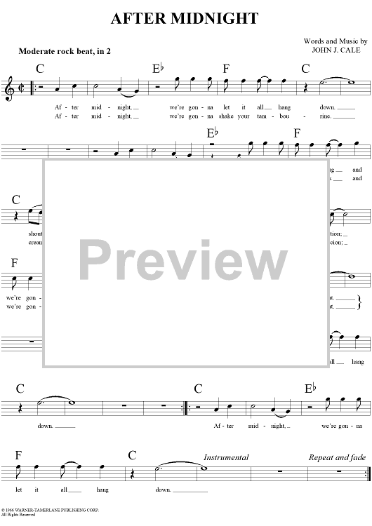 Digital Sheet Music for After Midnight by Eric Clapton, J. J. Cale scored for Lead Sheet; id:116042