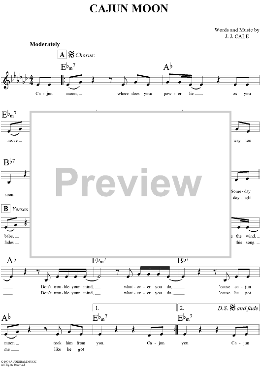 Digital Sheet Music for Cajun Moon by J. J. Cale scored for Lead Sheet; id:290837
