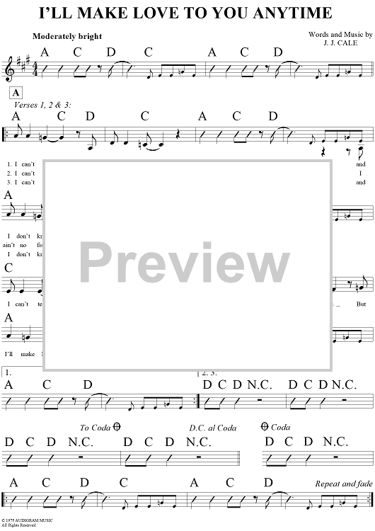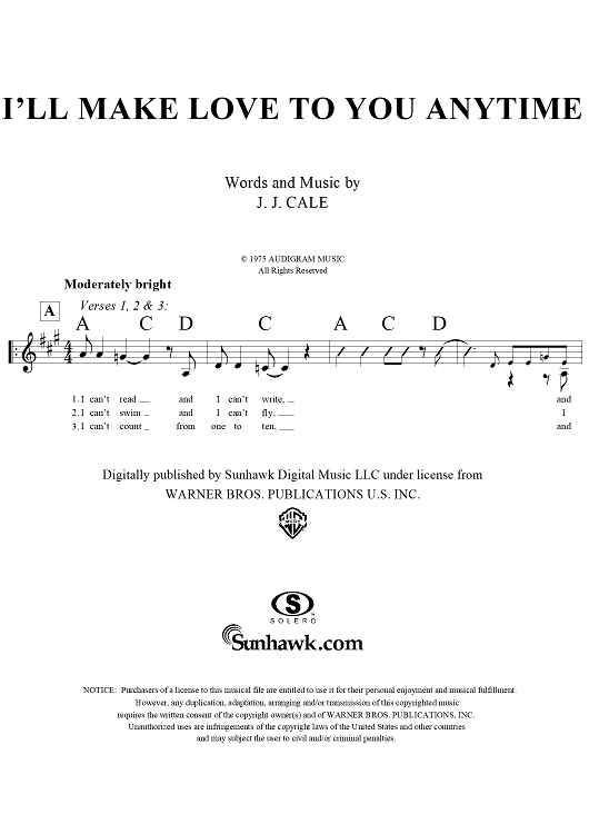 "I'll Make Love to You Anytime" Sheet Music by J. J. Cale