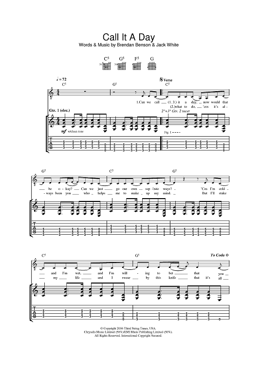 Digital Sheet Music for Call It A Day by Brendan Benson, The Raconteurs, Jack White scored for Guitar Tab; id:394090