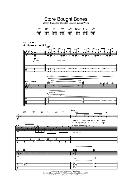 Digital Sheet Music for Store Bought Bones by Brendan Benson, The Raconteurs, Jack White scored for Guitar Tab; id:394094