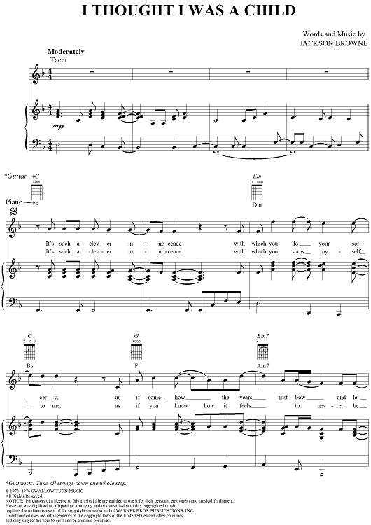 "I Thought I Was a Child" Sheet Music by Jackson Browne
