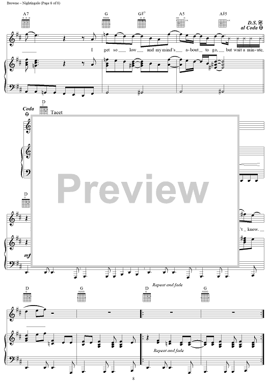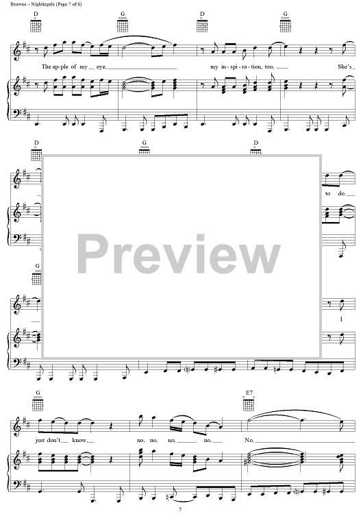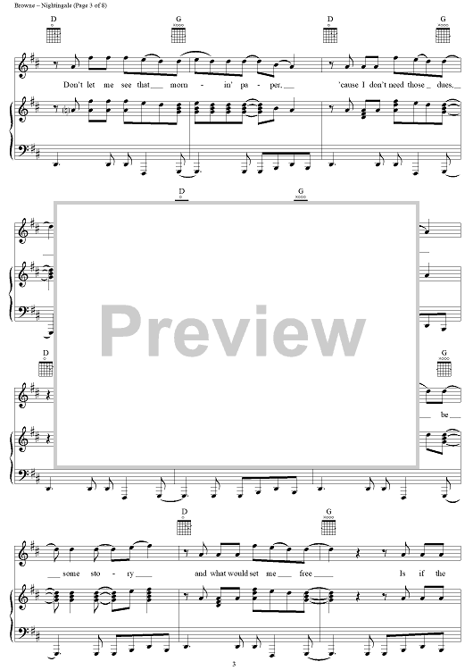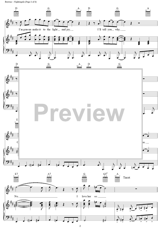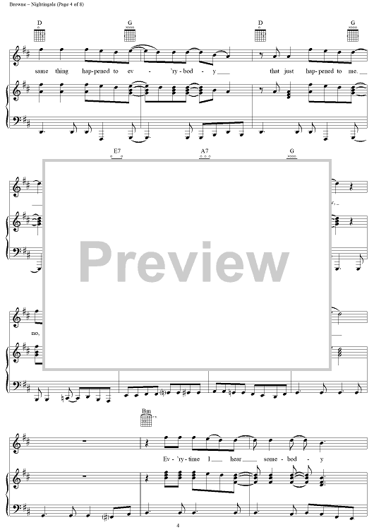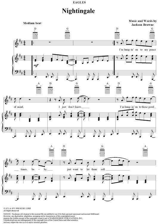 Digital Sheet Music for Nightingale by Jackson Browne, Eagles scored for Piano/Vocal/Chords; id:112923