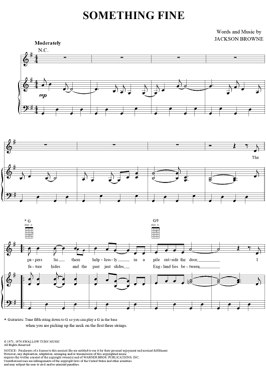 Digital Sheet Music for Something Fine by Jackson Browne scored for Piano/Vocal/Chords; id:273869