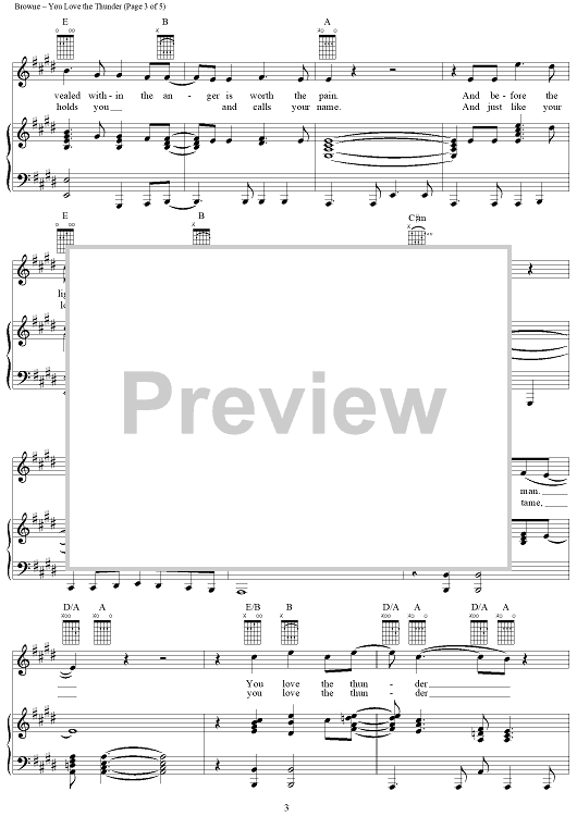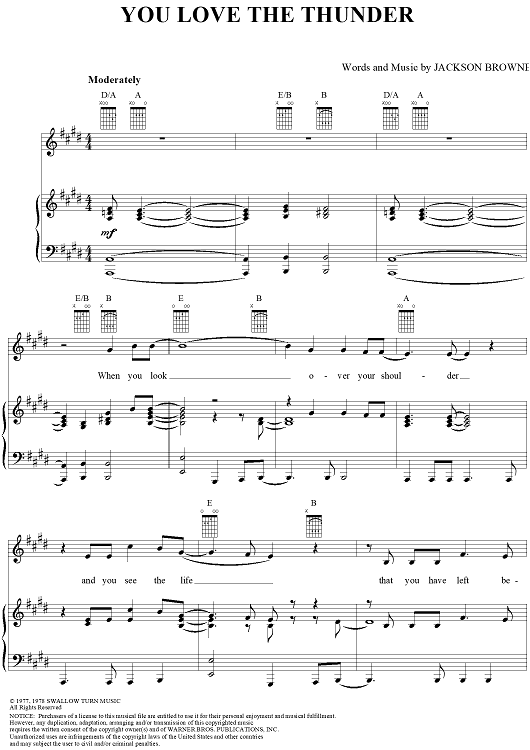 Digital Sheet Music for You Love the Thunder by Jackson Browne scored for Piano/Vocal/Chords; id:273803