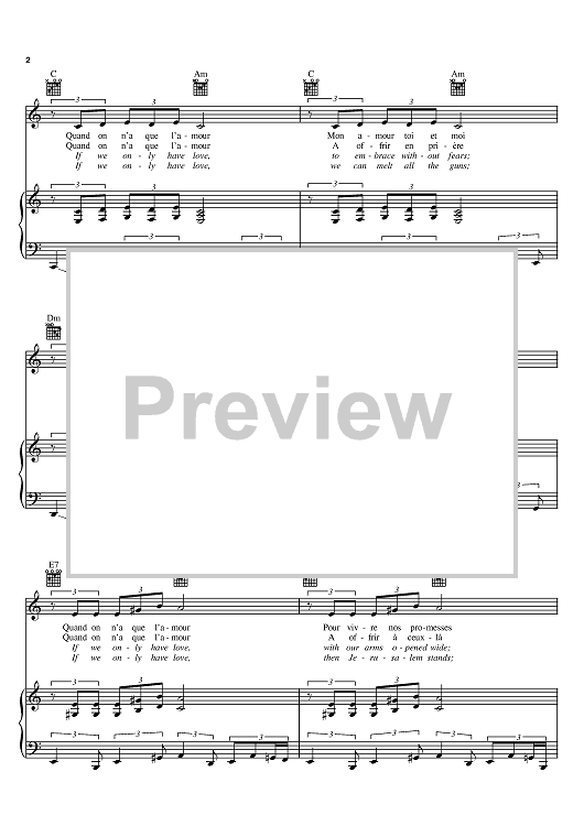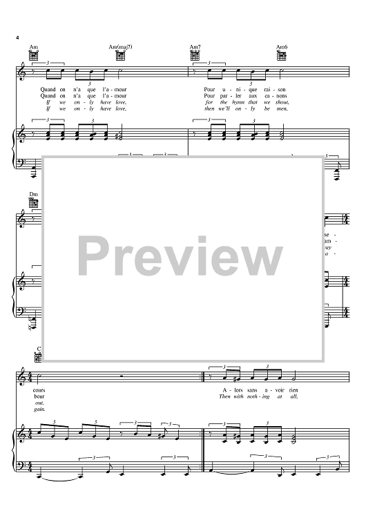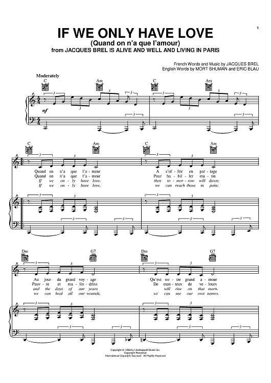 Digital Sheet Music for If We Only Have Love (Quand On N'a Que L'amour) by Jacques Brel, Mort Shuman, Eric Blau scored for Piano/Vocal/Chords; id:395197