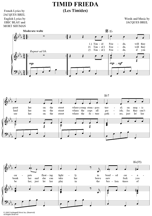 Digital Sheet Music for Timid Frieda (Les Timides) by Jacques Brel scored for Piano/Vocal/Chords; id:431614