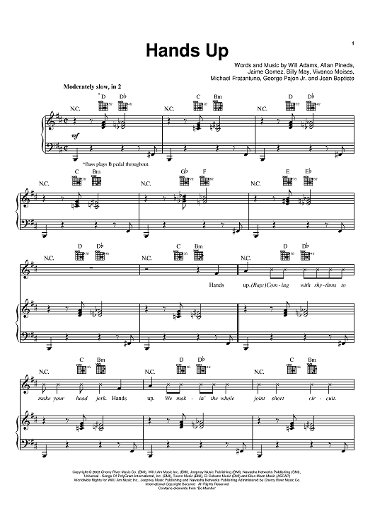 Digital Sheet Music for Hands Up by Jaime Gomez, will.i.am, Black Eyed Peas, Allan Pineda scored for Piano/Vocal/Chords; id:373644