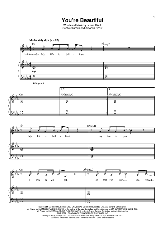 "You're Beautiful" Sheet Music by James Blunt