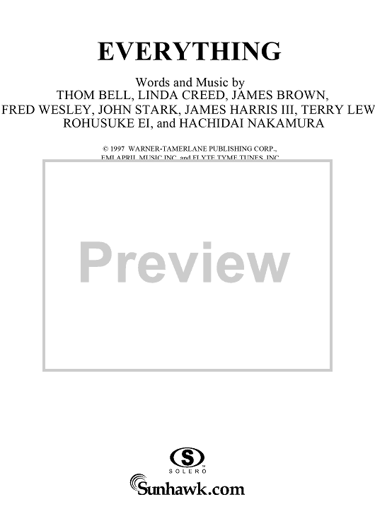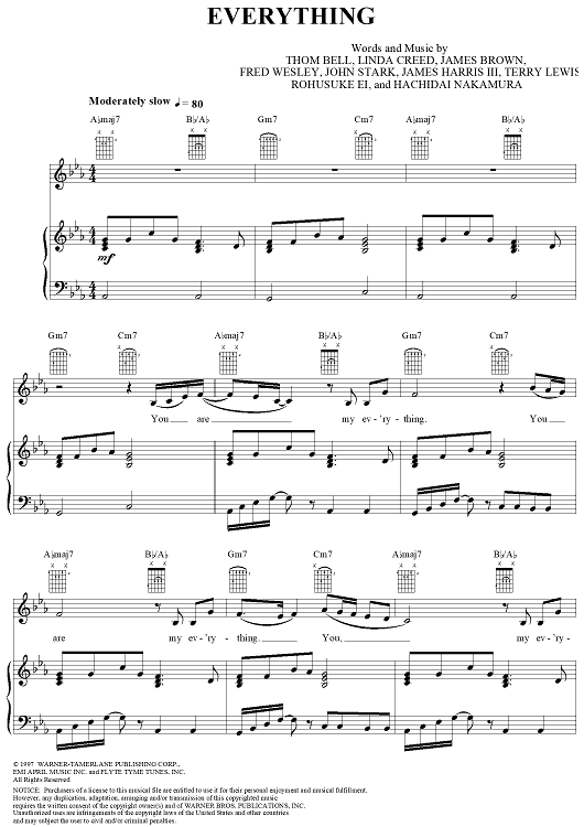 Digital Sheet Music for Everything by James Brown, Linda Creed, Jimmy Jam, Terry Lewis, Thom Bell, Fred Wesley, John Stark, Hachidai Nakamura, Mary J. Blige, Rokusuke Ei scored for Piano/Vocal/Chords; id:113056
