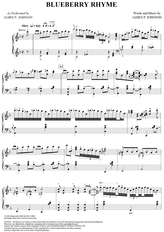 "Blueberry Rhyme" Sheet Music by James P. Johnson