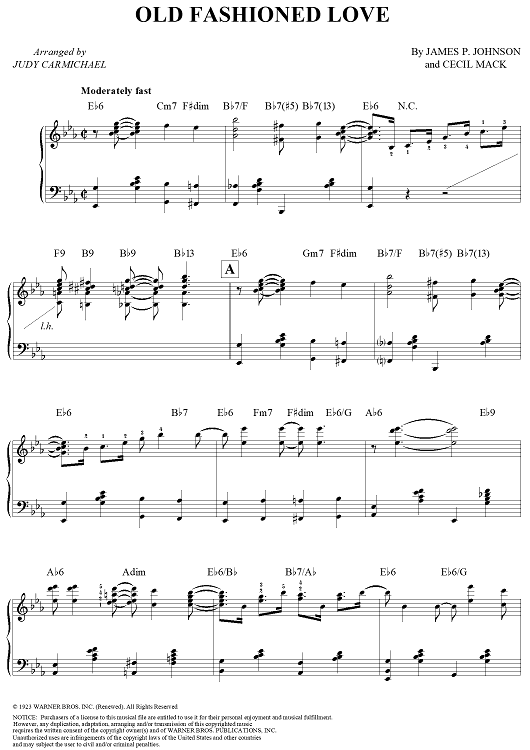 Digital Sheet Music for Old Fashioned Love by Cecil Mack, Judy Carmichael, James P. Johnson scored for Piano Solo; id:284894