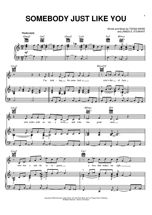 Digital Sheet Music for Somebody Just Like You by Teena Marie, James S. Stewart scored for Piano/Vocal/Chords; id:394385