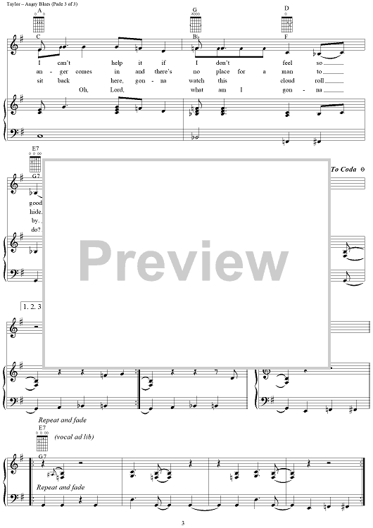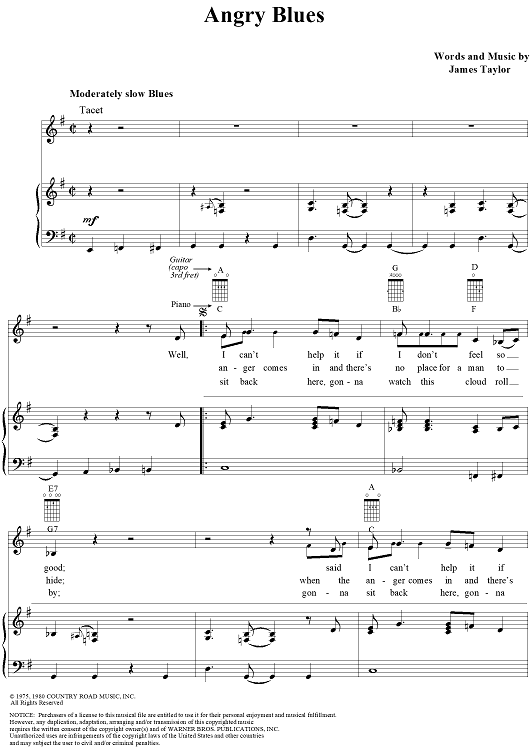 Digital Sheet Music for Angry Blues by James Taylor scored for Piano/Vocal/Chords; id:259966
