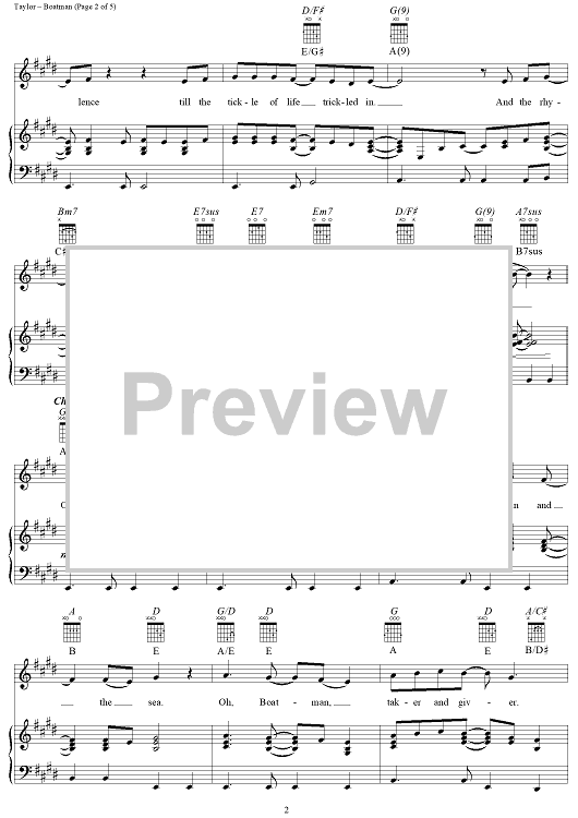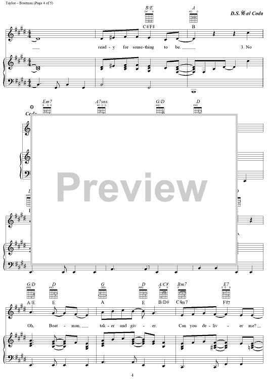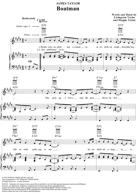 Digital Sheet Music for Boatman by James Taylor, Livingston Taylor, Maggie Taylor scored for Piano/Vocal/Chords; id:111683