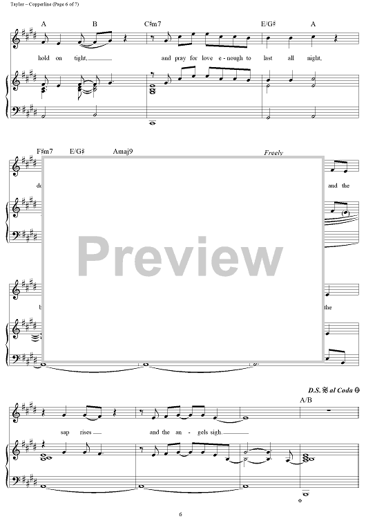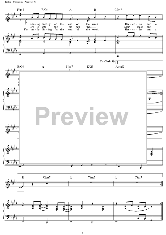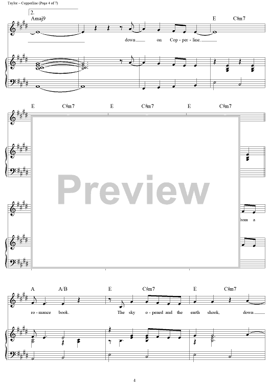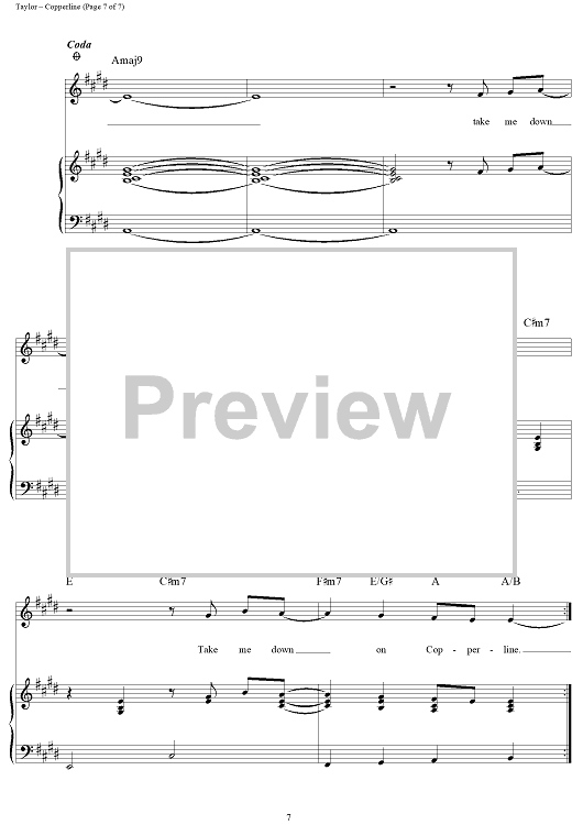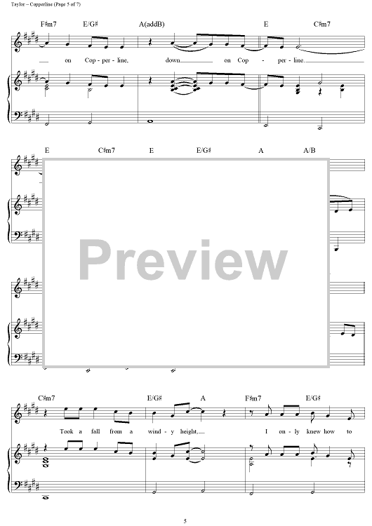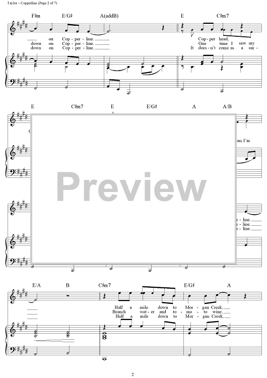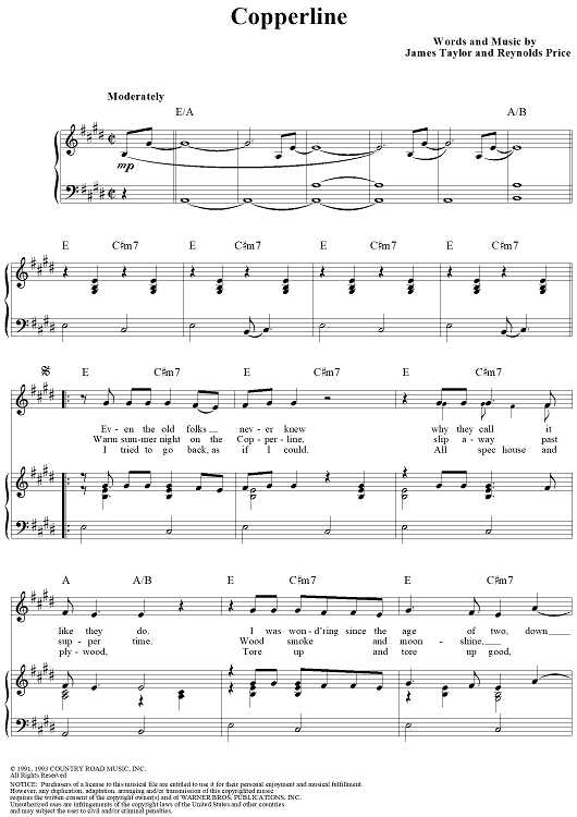 Digital Sheet Music for Copperline by James Taylor, Reynolds Price scored for Piano/Vocal/Chords; id:111361