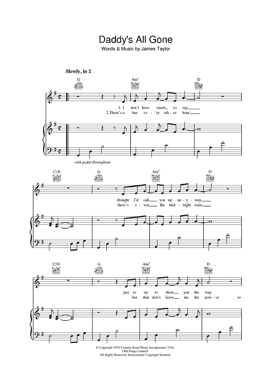 "Daddy's All Gone" Sheet Music by James Taylor