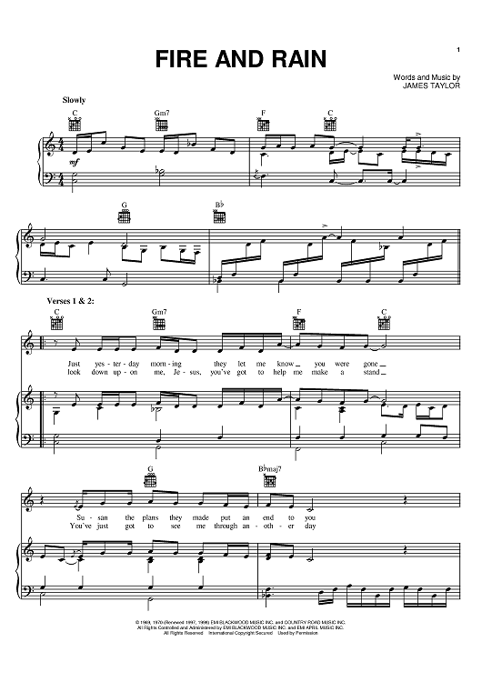 Digital Sheet Music for Fire And Rain by James Taylor scored for Piano/Vocal/Chords; id:368050