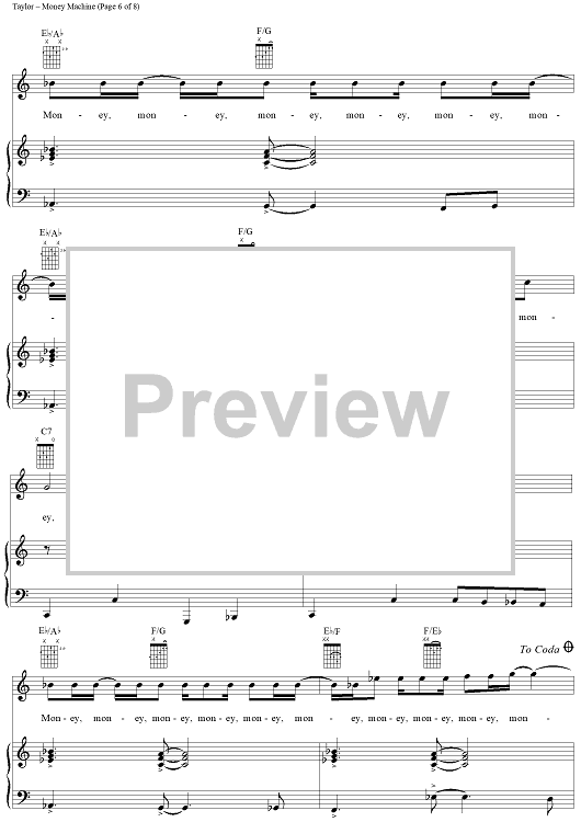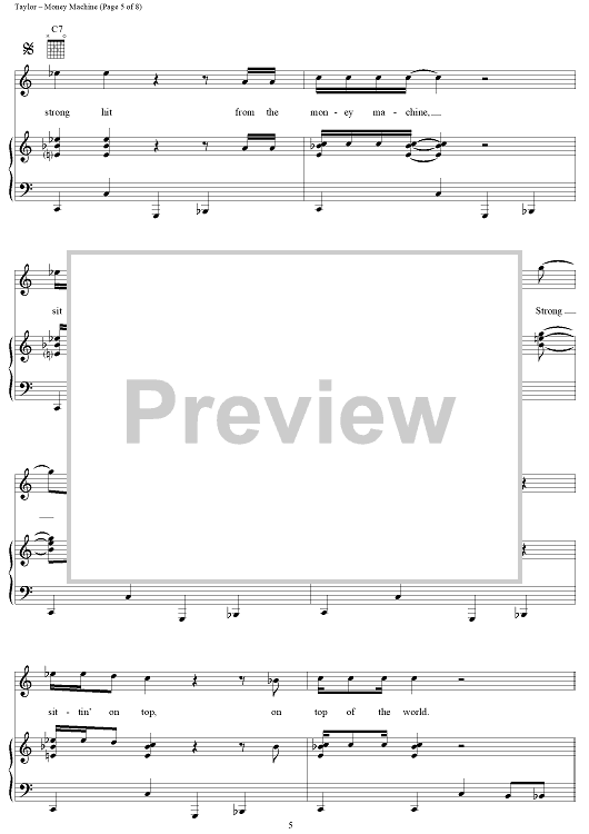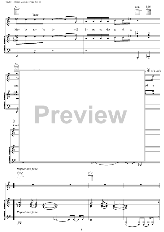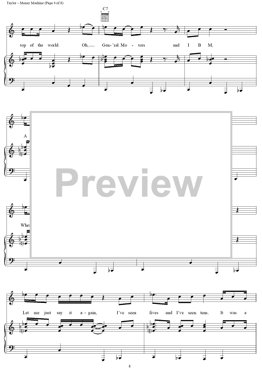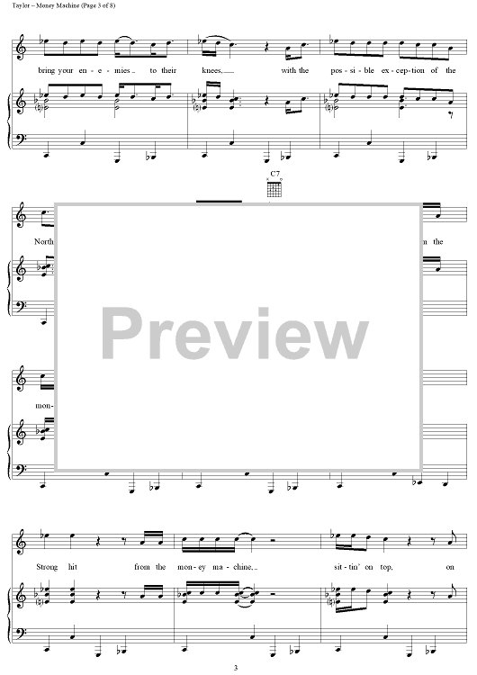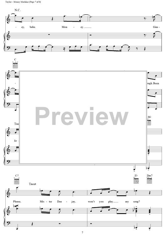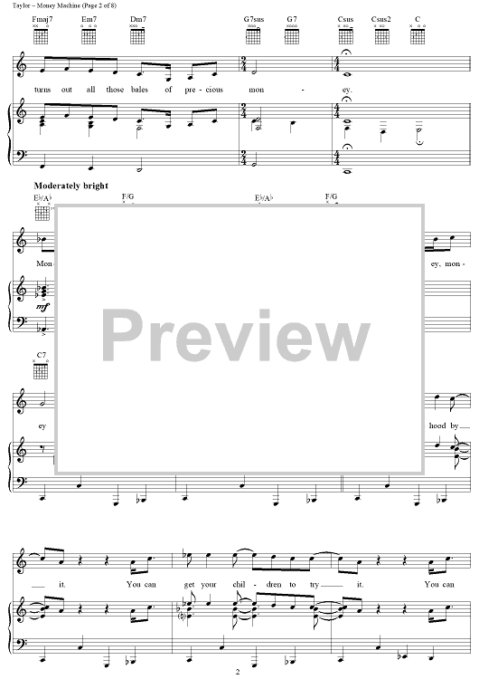 Digital Sheet Music for Money Machine by James Taylor scored for Piano/Vocal/Chords; id:113238