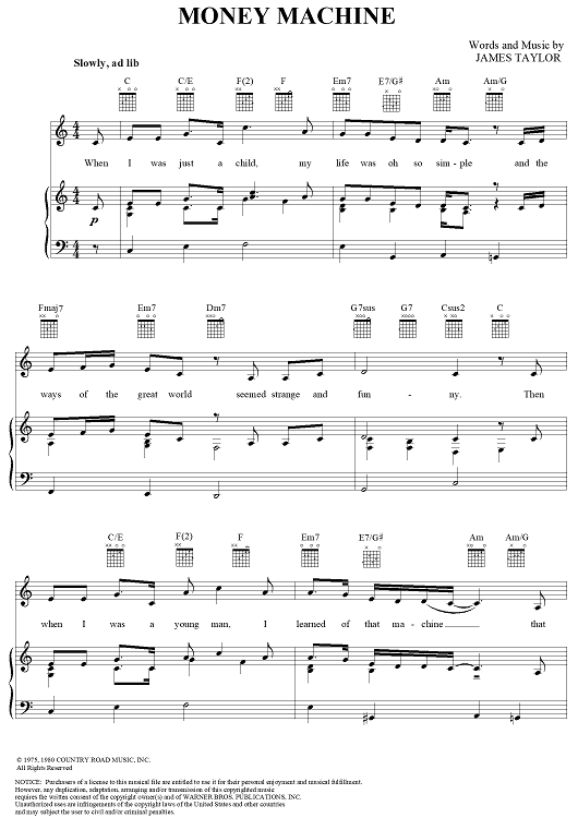 "Money Machine" Sheet Music by James Taylor