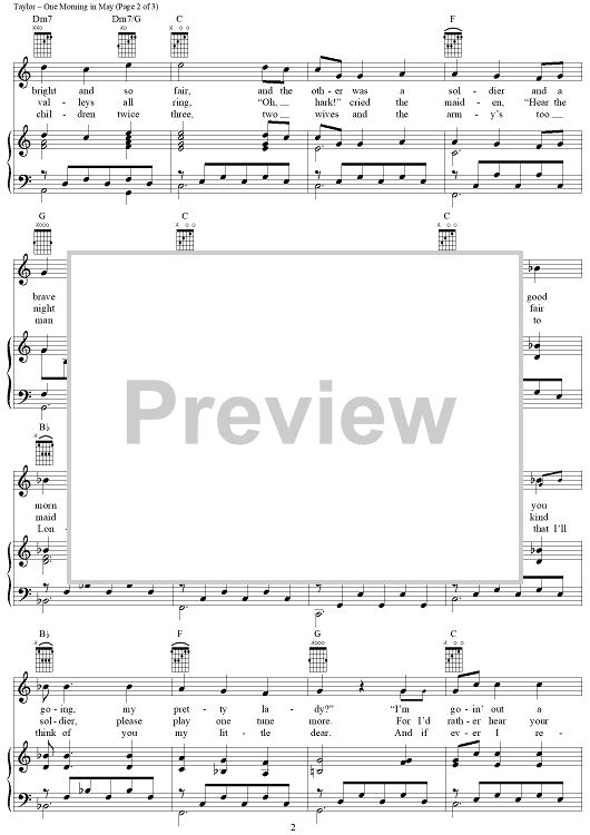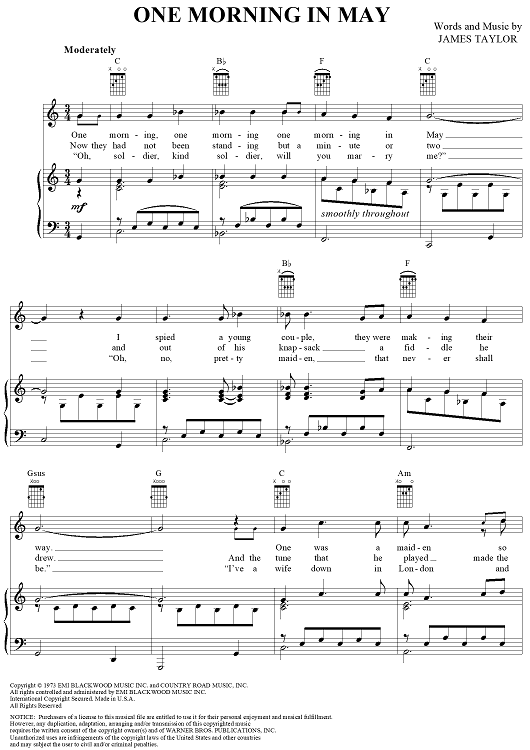 Digital Sheet Music for One Morning in May by James Taylor scored for Piano/Vocal/Chords; id:318645