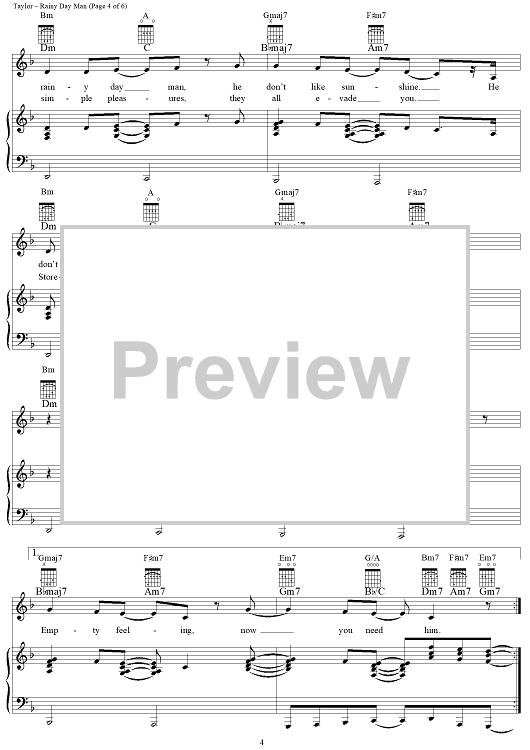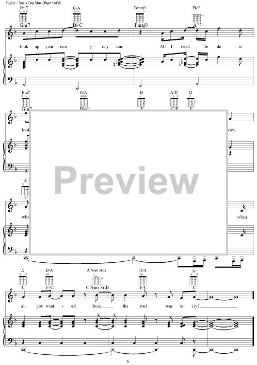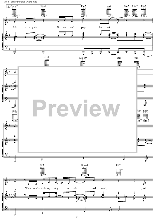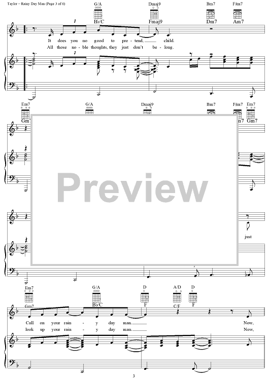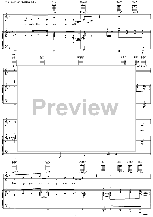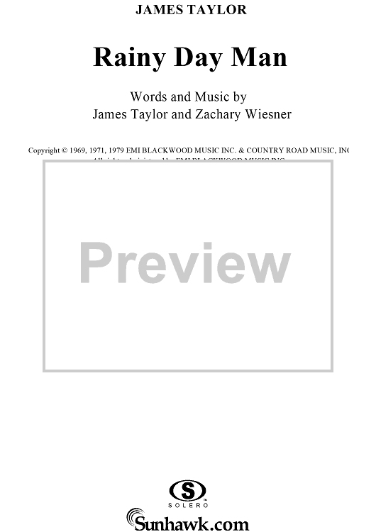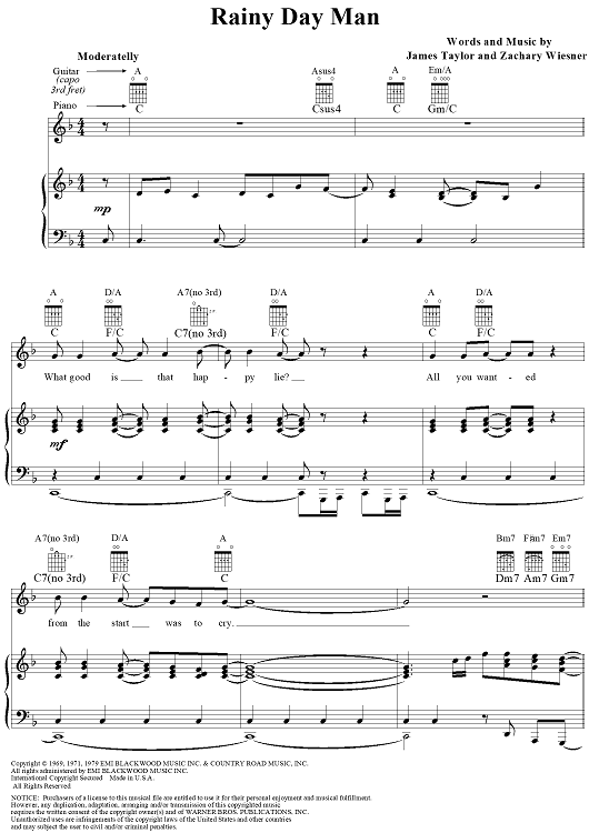 Digital Sheet Music for Rainy Day Man by James Taylor, Zachary Wiesner scored for Piano/Vocal/Chords; id:260374
