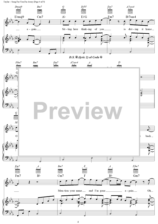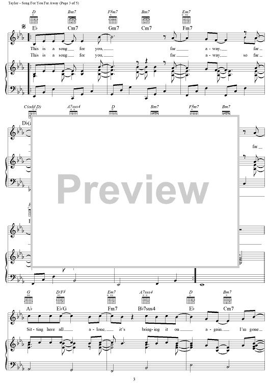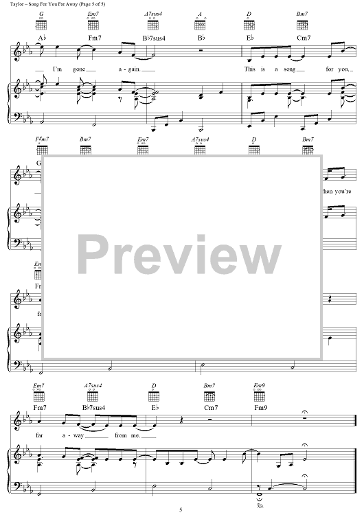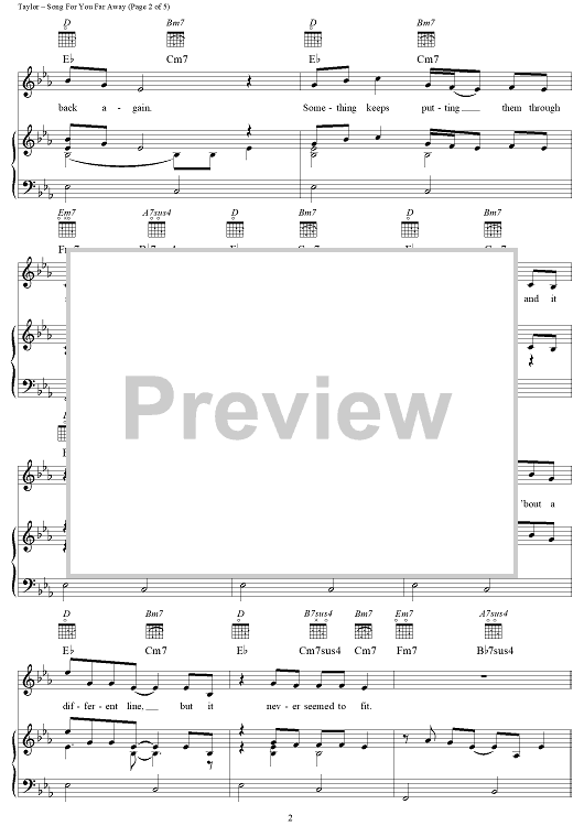Digital Sheet Music for Song For You Far Away by James Taylor scored for Piano/Vocal/Chords; id:112404