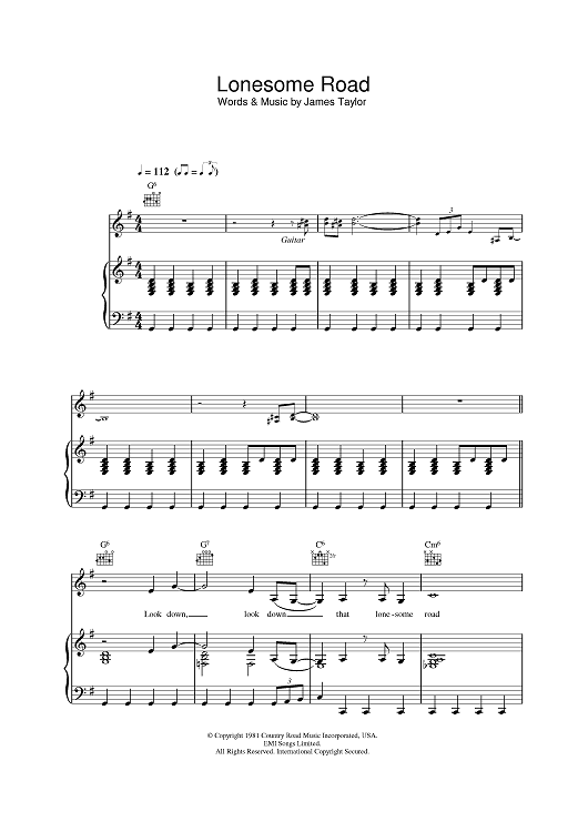 Digital Sheet Music for That Lonesome Road by James Taylor, Madeleine Peyroux scored for Piano/Vocal/Chords; id:387032