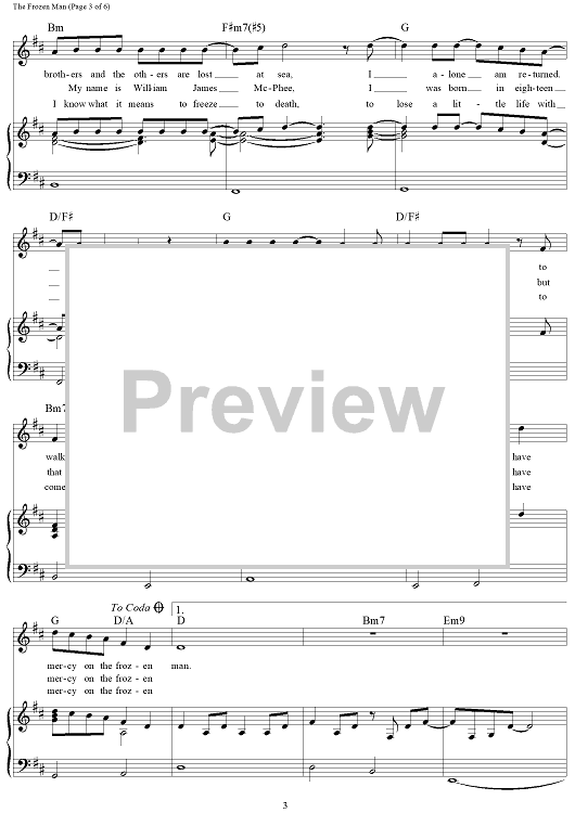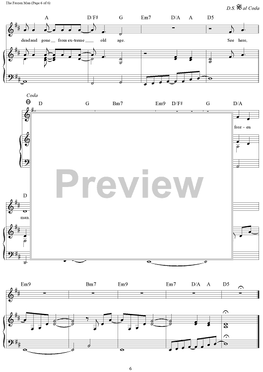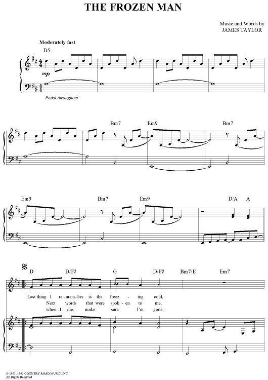 Digital Sheet Music for The Frozen Man by James Taylor scored for Piano/Vocal/Chords; id:113231