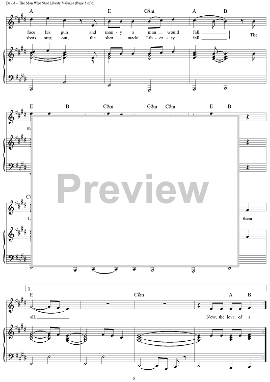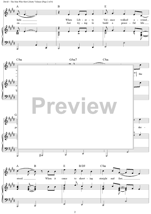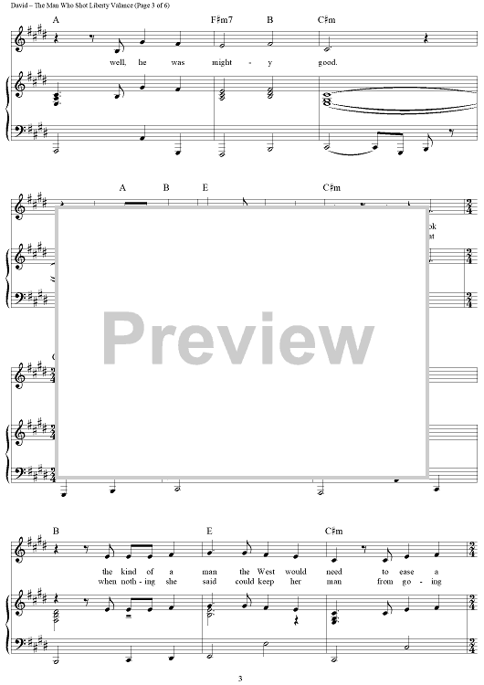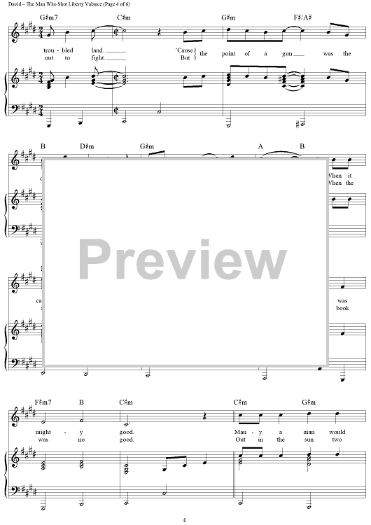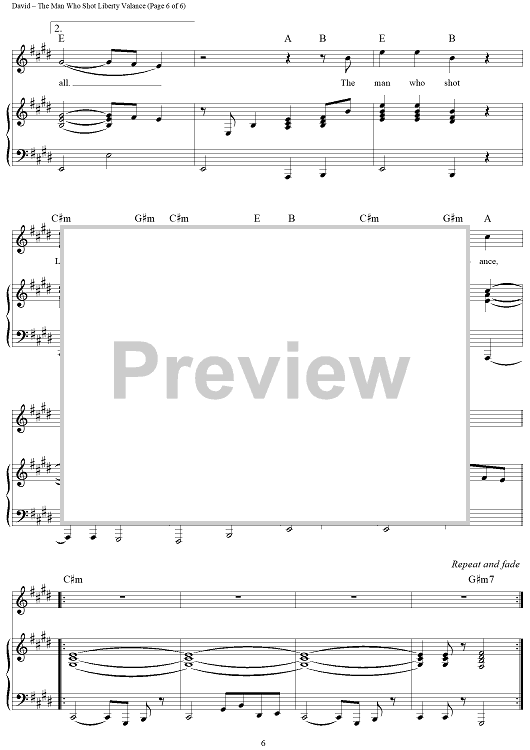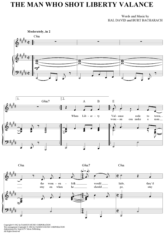 Digital Sheet Music for The Man Who Shot Liberty Valance by Hal David, Burt Bacharach, James Taylor scored for Piano/Vocal/Chords; id:362598