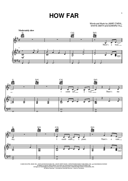 Digital Sheet Music for How Far by Edward Hill, Shaye Smith, Martina McBride, Jamie O'Neal scored for Piano/Vocal/Chords; id:374971