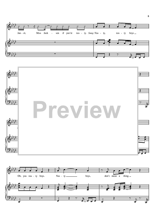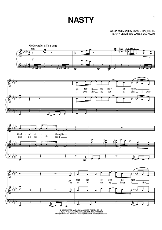 Digital Sheet Music for Nasty by Janet Jackson, Jimmy Jam, Terry Lewis scored for Piano/Vocal/Chords; id:372119