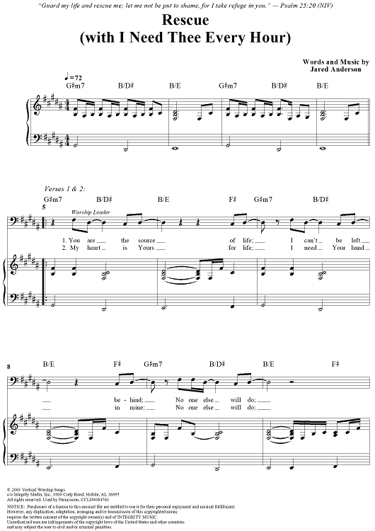 "Rescue (with I Need Thee Every Hour)" Sheet Music by Jared Anderson