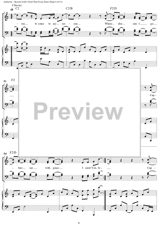 Digital Sheet Music for Rescue (with I Need Thee Every Hour) by Jared Anderson scored for Mixed Chorus/Piano; id:308948