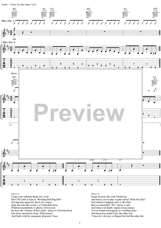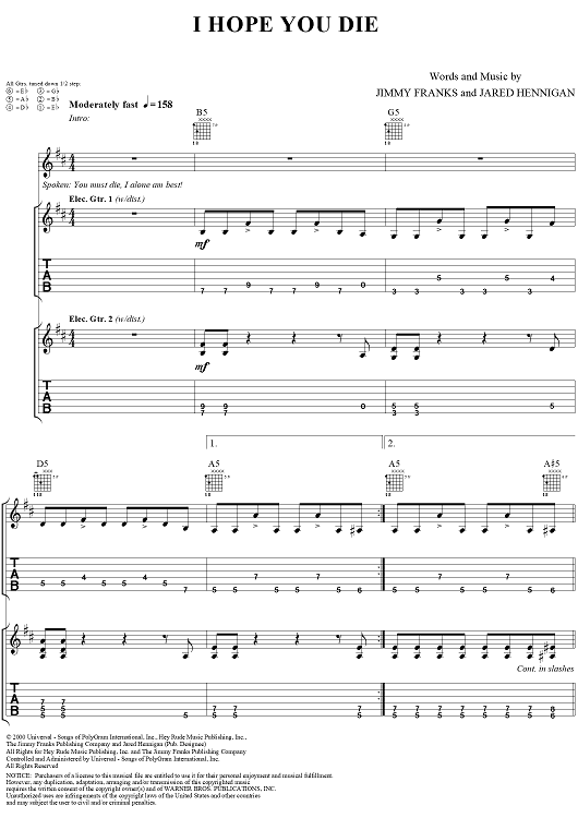 "I Hope You Die" Sheet Music by Bloodhound Gang
