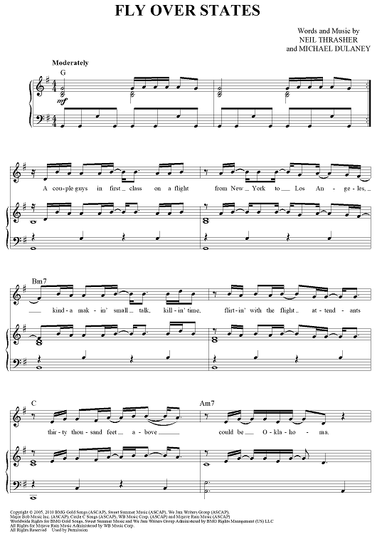 Digital Sheet Music for Fly Over States by Michael Dulaney, Neil Thrasher, Jason Aldean scored for Piano/Vocal/Chords; id:445047