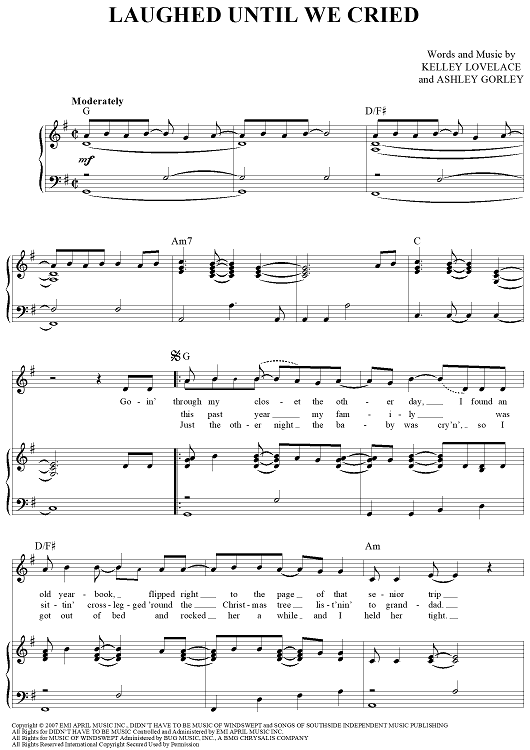 Digital Sheet Music for Laughed Until We Cried by Ashley Gorley, Kelley Lovelace, Jason Aldean scored for Piano/Vocal/Chords; id:445064