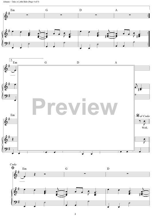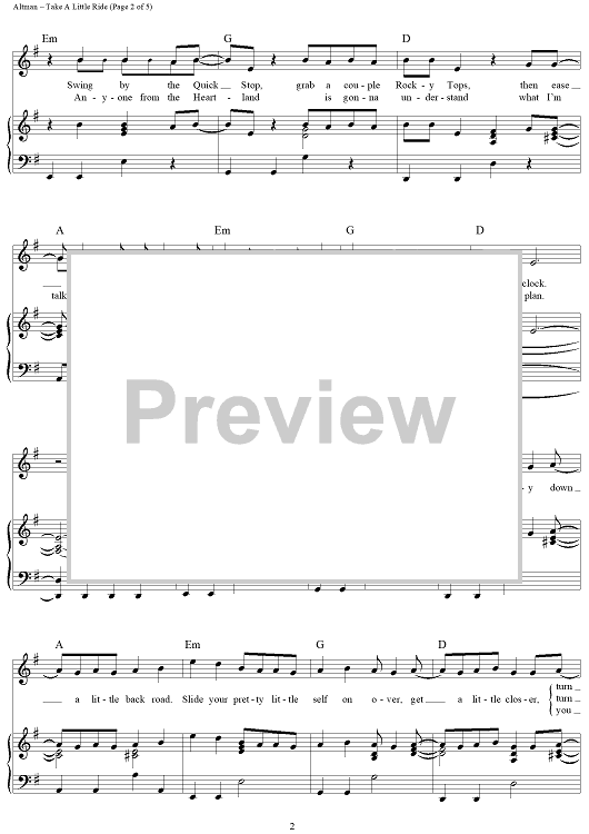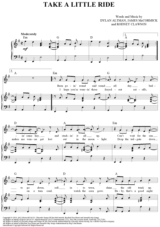 Digital Sheet Music for Take A Little Ride by Dylan Altman, Jason Aldean, Rodney Clawson, James McCormick scored for Piano/Vocal/Chords; id:445067