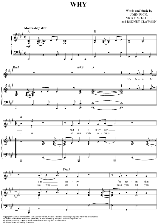 Digital Sheet Music for Why by John Rich, Vicky McGehee, Jason Aldean, Rodney Clawson scored for Piano/Vocal/Chords; id:445058
