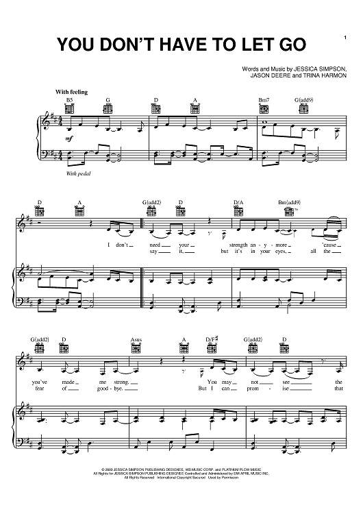 Digital Sheet Music for You Don't Have To Let Go by Jessica Simpson, Jason Deere, Trina Harmon scored for Piano/Vocal/Chords; id:374751