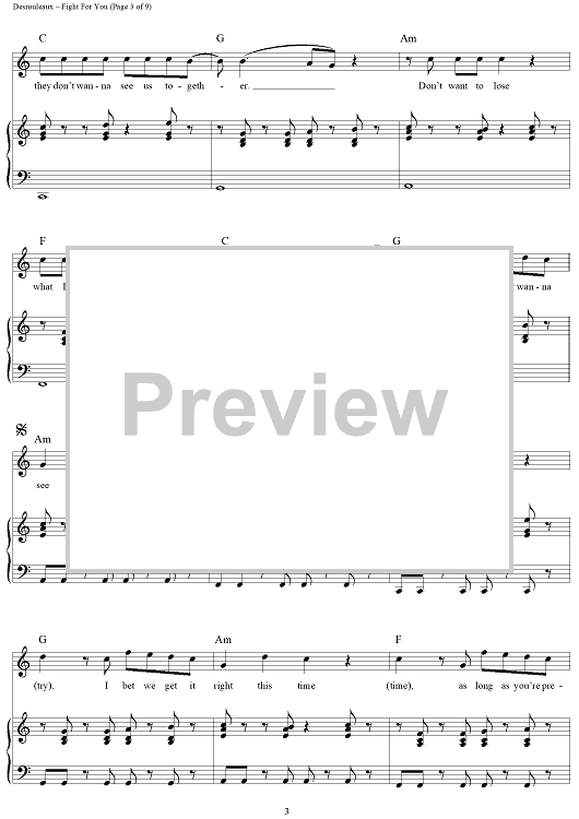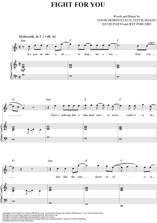 Digital Sheet Music for Fight For You by David Paich, Jeff Porcaro, Jason Derulo, Stevie Hoang scored for Piano/Vocal/Chords; id:444428