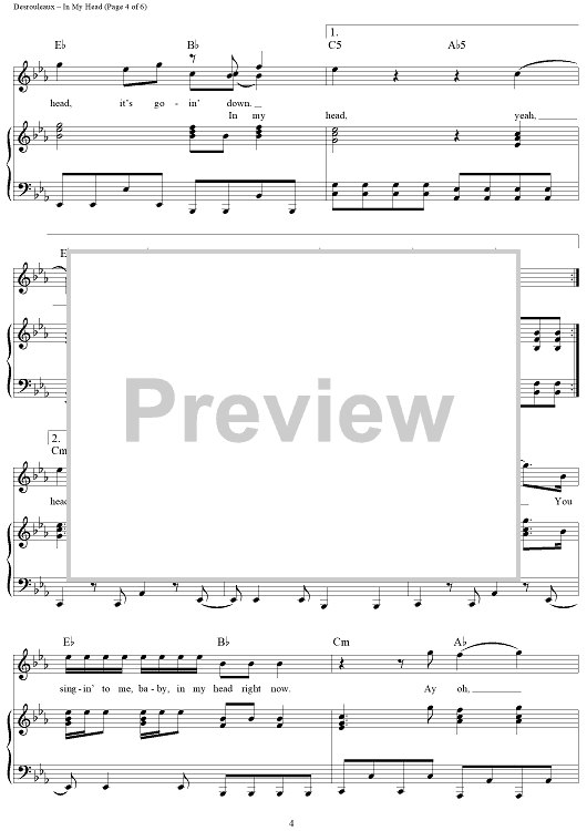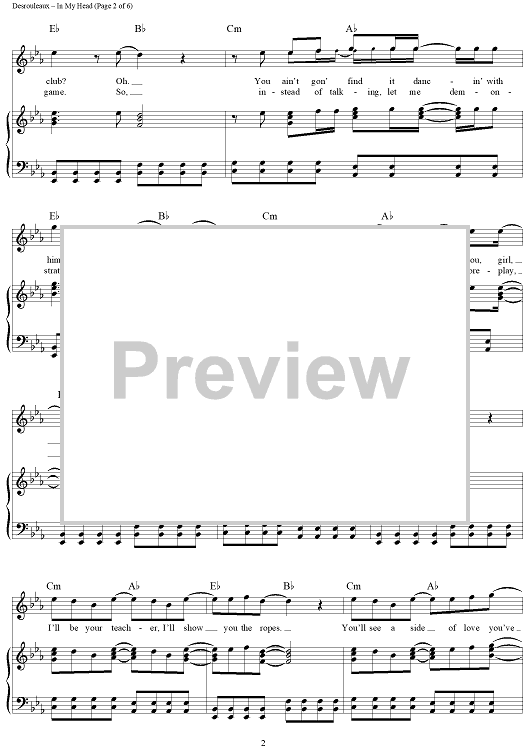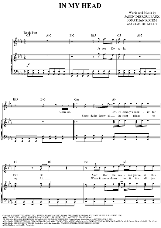 Digital Sheet Music for In My Head by Jonathan Rotem, Claude Kelly, Jason Derulo scored for Piano/Vocal/Chords; id:410502