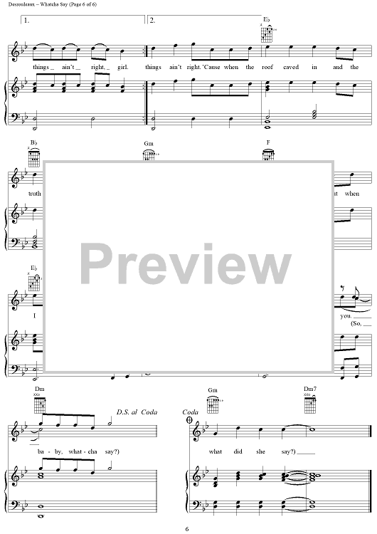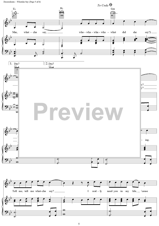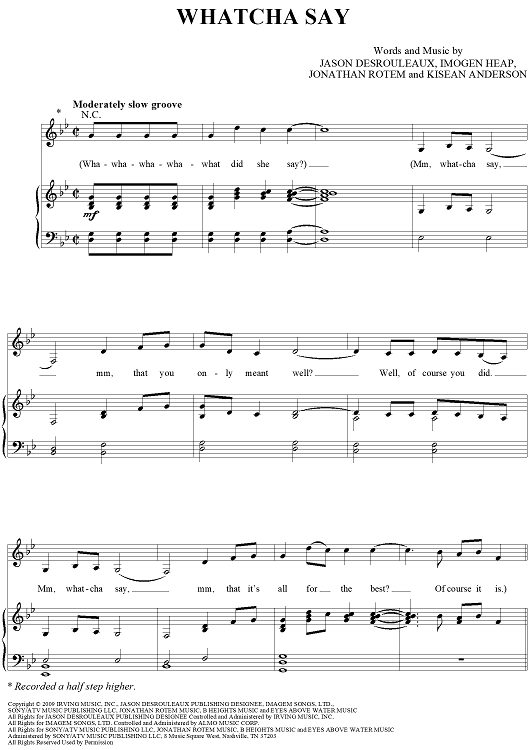 Digital Sheet Music for Watcha Say by Jason Derulo scored for Piano/Vocal/Chords; id:406775