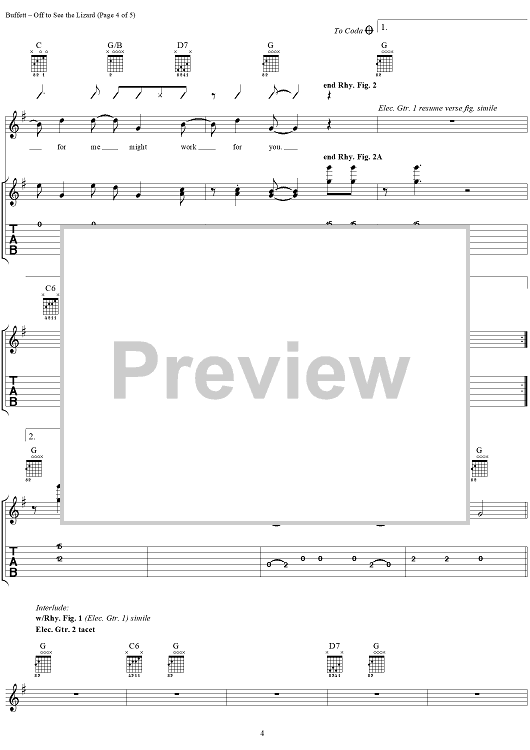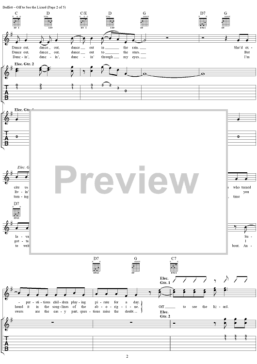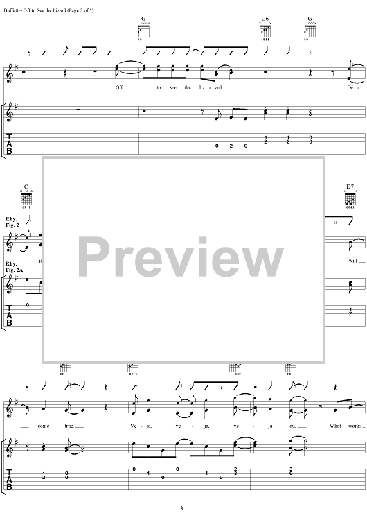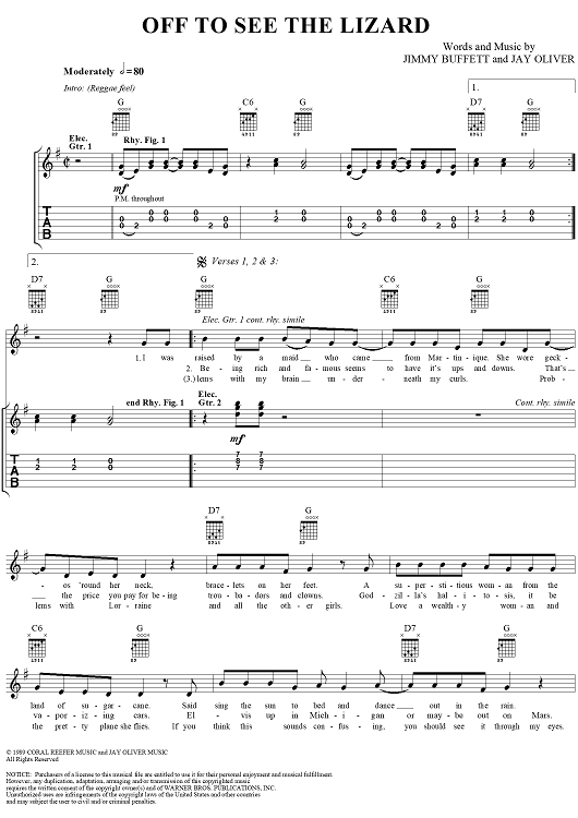 Digital Sheet Music for Off to See the Lizard by Mike Taylor, Jay Oliver, Jimmy Buffett scored for Guitar Tab/Vocal; id:284350