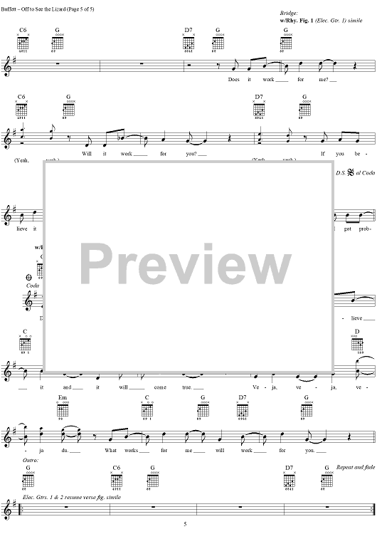 "Off to See the Lizard" Sheet Music by Jimmy Buffett