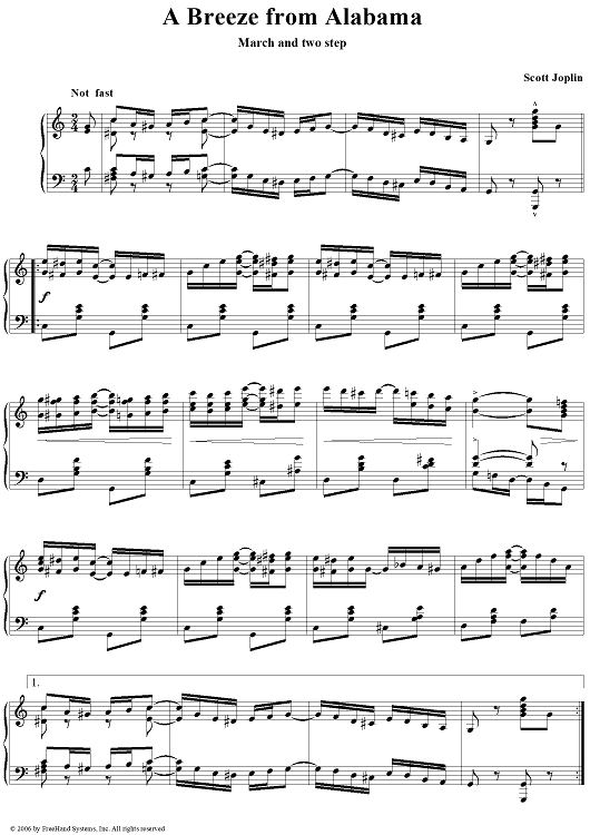 Digital Sheet Music for A Breeze from Alabama by Scott Joplin scored for Piano Solo; id:249667