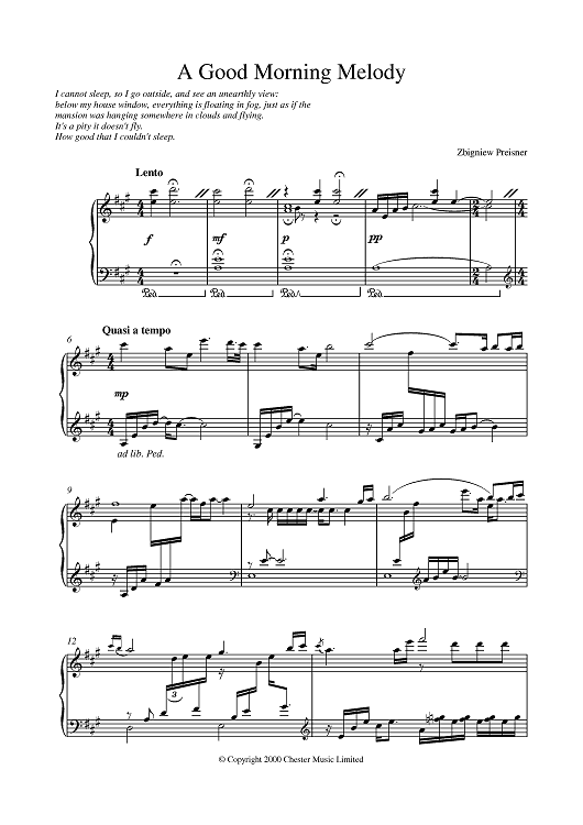 "A Good Morning Melody" Sheet Music by Zbigniew Preisner