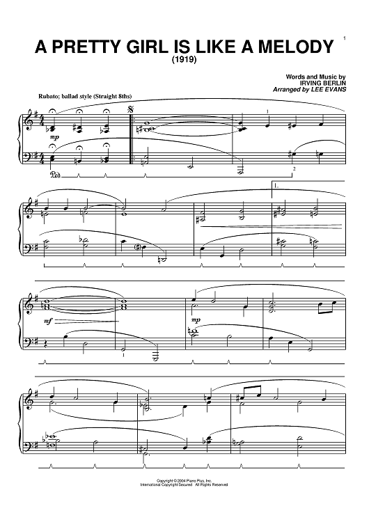 Digital Sheet Music for A Pretty Girl Is Like A Melody by Irving Berlin scored for Piano; id:374403